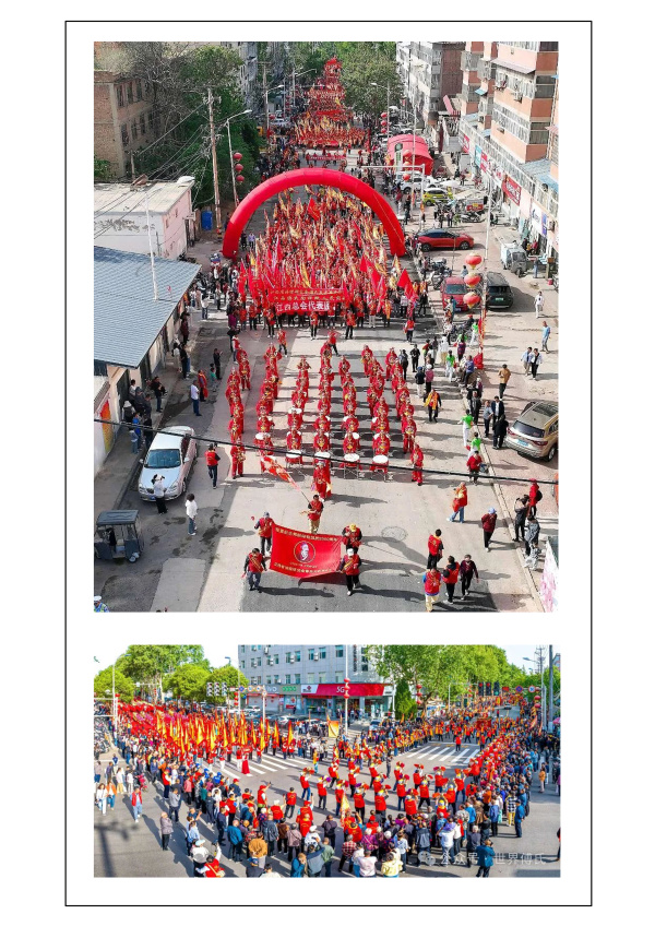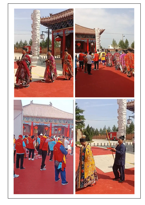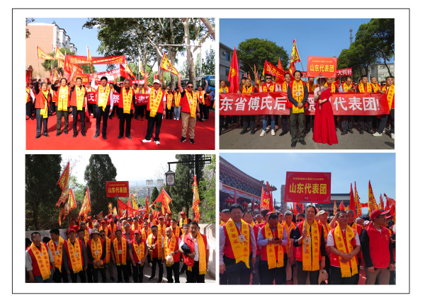 5月5日(农历乙巳四月初八),万人攒动、声势浩大的踩街巡游活动拉开序幕。平陆宾馆庄严肃穆,政府门前拜祖队伍群星列队,个个衣冠整肃,蓄势待发。上午8时许,踩街仪式正式开始,六十多个方队,浩浩荡荡地向傅相祠广场行进,全程约1.5公里。各省代表团队伍绵延2公里,宛如一条气势磅礴的文化长龙。山东傅氏作为此次活动的重要力量,派出了300余人的代表团奔赴祖地,积极参与巡游踩街,他们身着庆典红衣,胸前系着“尊宗敬祖、孝道传承”的金色绶带,精神抖擞,与祖地人民热情互动,展现出深厚的宗族情谊。踩街巡游活动结束后,众人齐聚傅相祠大典广场。人潮如织,彩旗飘飘,锣鼓喧天,盛况空前。10时许,“中华圣人傅說诞辰3360周年纪念大典”在悠扬的古乐声中拉开了帷幕。一项项仪式饱含着傅氏宗亲对先祖的深情缅怀。种植千秋松柏,寓意着傅氏家族如松柏般常青,家族文化源远流长;钟鸣九声,击鼓56响,象征着傅說文化在中华大地的深远影响,以及中华民族的团结一心;敬献花篮,表达了对傅說的崇高敬意;全体宗亲依次鞠躬、跪拜上香,动作虔诚,寄托着对先祖的追思和敬仰。