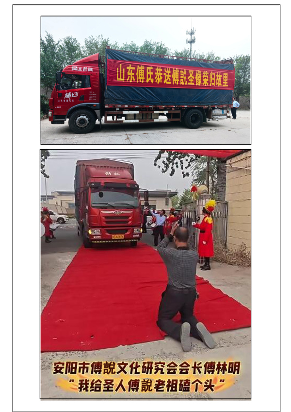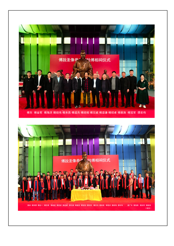 至此,凝聚着傅氏后裔深厚情感和无限景仰的《傅說圣像》,从创意设计制作到恭请启运落地,终于画上了圆满的句号。