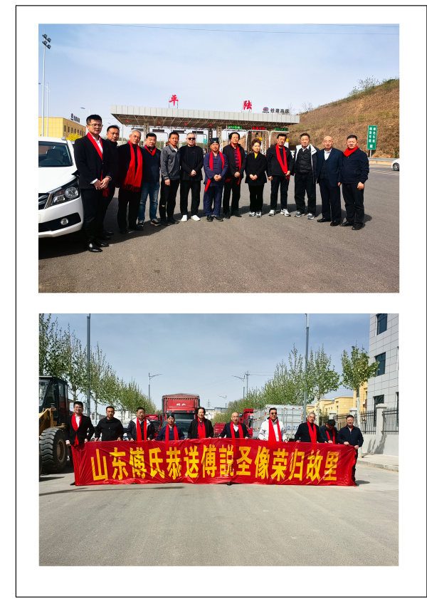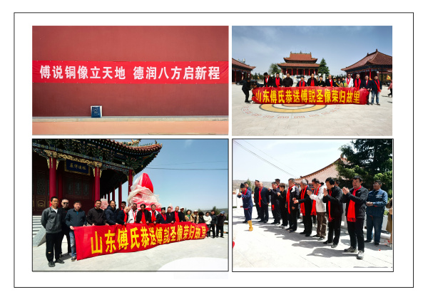 4月12日《傅說圣像》启程前往终目的地——山西平陆傅相祠,平陆县傅圣故里文化研究会会长傅宝柱率领傅彩丽等宗亲举行了盛大的迎接仪式,山东护送团队与平陆迎接队伍一同前往傅相祠,在大家的祝福声中,《傅說圣像》端坐于傅相祠台阶之上。